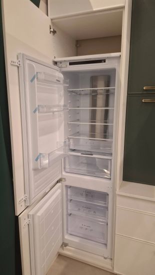 Снимем старые дверцы. Вырежем отверстия под петли, сделаем разметку и прикрепим ручки. Навесим и отрегулируем новые дверцы. Работа займёт 30–60 мин. Будет шумно.